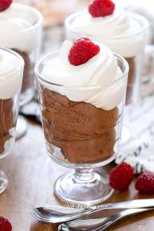 | Easy Chocolate Mousse Recipe chocolate, cream This dessert is so easy and you can either make it rich or just a little bit of that yummy chocolate flavour by adding more or less chocolate topping. This really is a delicious dessert and the family...