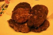| Easy Crab Cakes Recipe - Food.com butter, oil, pepper, mustard powder, crab, eggs, worcestershire sauce, salt, crackers, lemon juice This simple crab cake recipe came from an old community cookbook. It was the recipe my father used. Serving Size: 1 (174) g Servings Per Recipe: 3 AMT. PER SERVING % DAILY VALUE Calories: 441.5 Ca...