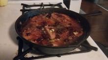 | Pork Chops With Fresh Cranberry Sauce Recipe by Quick.easy.cooking | ifood.tv butter, pork chop, chicken stock, orange peel, oil, pepper, cranberry, spring onion, brown sugar, apple juice, flour 1 In a shallow bowl, combine the flour and pepper. Lightly dredge the pork chops in the seasoned flour. Reserve the dredging mixture. 2 In a large skillet, warm the oil over medium-high heat until ho...
