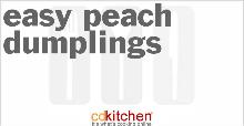 | Easy Peach Dumplings Recipe | CDKitchen.com butter, pecan, nutmeg, cinnamon, peach, cookie/biscuit, vegetable fat spread, brown sugar, sugar, peach syrup, milk A recipe for Easy Peach Dumplings made with peach halves, peach syrup, pecans, sugar, brown sugar, ground cinnamon, ground nutmeg Heat oven to 425 degrees F. Arrange peach halves, cut side down, in un...