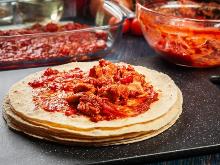 | Easy Enchilada Sauce Recipe | SparkRecipes tomato paste, chili dried/powder, chicken stock, canola oil, oregano, cumin, wholewheat flour, salt A tasty, slightly spicy enchilada sauce. Also great over burritos. 1. In a medium saucepan, heat oil 2. Add flour, stirring with a wooden spoon until smooth. Cook for 1 minute. 3. Add chili powder and...