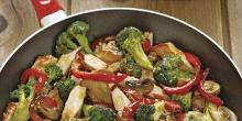 | Easy chicken stir-fry recipe - BBC Food chicken breast, red pepper, chili dried/powder, cornstarch, sesame seed oil, olive oil, sesame seed, lime, shallot, bok choy, soy sauce, noodles, honey An easy chicken stir-fry which takes no time to make. Feel free to swap the veg depending on what's in the fridge. Heat the oil in a large frying pan or wok. Saute the shallot, pepper and chicken ...