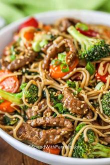 | Easy Beef Stir Fry - Spend With Pennies beef flank steak, vegetables, cornstarch, sesame seed oil, oil, ginger root, garlic, soy sauce, brown sugar, orange juice, water Beef stir fry is the perfect dish filled with tender beef, lots of veggies and an easy flavorful sauce. Serve with rice or noodles. Season steak with salt & pepper. Toss with cornstarch and set as...