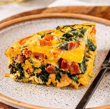 | Easy Cheesy Frittata Recipe - Food.com egg whites, basil, tomato, eggs, bacon, mozzarella cheese, water This is from the Kraft Food & Family catalog. I doubled the recipe and baked it in a 9x13 dish. I have also substituted spinach for the basil, excellent both ways. Serving Size: 1 (79) g Servings...