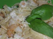 | Easy Shrimp Linguine With Basil-Garlic Butter Recipe - Food.com butter, olive oil, basil, garlic, shrimp, parmesan cheese, pasta Easy and quick to make. Tastes like you were at the stove all day! It will soon be your family favorite. Serving Size: 1 (192) g Servings Per Recipe: 4 AMT. PER SERVING % DAILY VALUE Calories: 462....