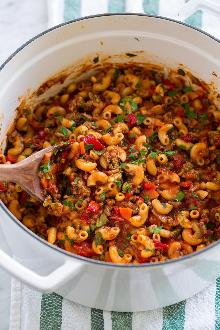 | Easy Goulash Recipe (One Pot American Style) - Cooking Classy tomato sauce, tomato paste, red bell pepper, chicken stock, ground beef, olive oil, pepper, parsley, paprika, carrot, onion, garlic, tomato, worcestershire sauce, salt, seasoning, pasta Classic homemade Goulash! This delicious, easy recipe is made with hearty beef, tender macaroni pasta, lots of vegetables and a savory tomato based sauce. Saute veggies: Heat a large pot over medium-h...