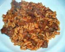 | Easy Goulash Recipe | SparkRecipes tomato sauce, ground beef, pepper, dried garlic, onion, tomato, sweetcorn, salt, pasta Bring a large pot of lightly salted water to a boil. Add pasta and cook for 8 to 10 minutes or until al dente; drain. In a large skillet over medium heat, saute the ground beef for 5 minutes. Add the ...