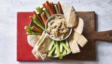 | Super Easy Hummus - Healthy Snack Recipe Video by Weelicious | ifood.tv olive oil, chickpea, garlic, tahini, salt, lemon juice Hummus! It might sound strange, but kids love hummus! and they love to dip things. Hummus is perfect for dipping an array of veggies, spreading on tortillas, pita bread, sandwich bread for a protein-p...
