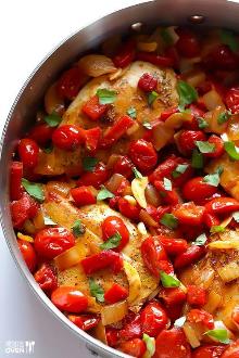 Easy Italian Chicken Skillet Recipe | SparkRecipes chicken, olive oil, cloves, basil, onion, garlic, tomato, sweet pepper This Easy Italian Chicken Skillet is full of amazing fresh flavors, and is ready to go in less than 30 minutes! NOT Originally My Recipe! I altered it a little bit using fresh peppers. ** https://www...
