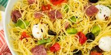 | Easy Italian Angel Hair Salad Recipe - How to Make Italian Angel Hair Salad black olive, salami, green pepper, red pepper, chili dried/powder, olive oil, lemon, salt, mozzarella cheese A super-easy pasta salad recipe from Delish.com. In a large pot of salted boiling water, cook angel hair according to package directions until al dente. Drain, then transfer to a large serving bowl. ...