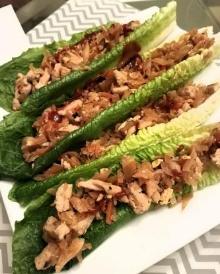 | Easy Lettuce Wraps With Dipping Sauce Recipe - Food.com ground pork, chicken, hoisin sauce, chili paste, sesame seed oil, water chestnut, carrot, spring onion, garlic, lettuce, soy sauce, rice An easy way to make lettuce wraps that taste as good as PF Changs. Serving Size: 1 (246) g Servings Per Recipe: 6 AMT. PER SERVING % DAILY VALUE Calories: 288 Calories from Fat 163 g 57 % Total F...