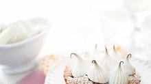 | The Mandeville Pink Meringues - Healthy & Easy Recipes | House & Garden egg whites, icing sugar, food coloring, cornstarch, sugar, whipped cream The Mandeville Pink Meringues - dessert recipes and ideas on HOUSE by House & Garden Step 1 Whisk the egg whites until they are stiff enough to make soft peaks. Step 2 Add a few drops of pink f...