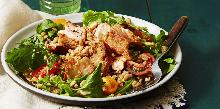 | Farro & Arugula Salad With Mustard Vinaigrette Recipe - Good Housekeeping Easy Salads olive oil, shallot, tomato, garden rocket, salmon, mustard, lemon juice This salad makes for the perfect light mid-day meal. Step 1 In medium saucepan, combine farro, enough water to cover by 1 inch and 2 teaspoons salt. Partially cover and heat to boiling on high. ...