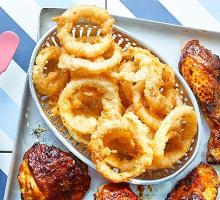 | Easy pickled onion rings recipe | BBC Good Food cornstarch, bicarbonate of soda, oil, paprika, coriander seed, cayenne pepper, onion, malt vinegar, sugar, beer/lager, flour Feast on these lager-battered pickled onion rings as a snack, or serve as part of an American-themed spread, with BBQ chicken pieces and mac ‘n’ cheese STEP 1 Tip the vinegar, sugar, 50ml...