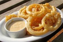 Easy Onion Rings Recipe - Food.com dip, sweet onion, ranch dressing, baking mix, oil, tomato ketchup/catsup, buttermilk Thinly sliced onion rings with a mild flavor. I was trying to copy some onion rings I had at Cheeseburger in Paradise, and these are pretty close. Serving Size: 1 (162) g Servings Per Recipe: 4 AMT....
