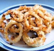 | Baked Onion Rings Recipe by Quick.easy.cooking | ifood.tv egg whites, pepper, onion, salt, bread crumbs Mix egg whites, salt and pepper. Dip onion rings into egg mixture and then coat with bread crumbs. Place in single layer on greased baking sheet. Bake 10 minutes at 450 degrees. Recipe Summary Di...