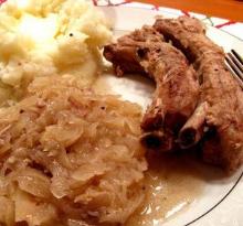 | Spareribs Sauerkraut Recipe by Quick.easy.cooking | ifood.tv ribs, sauerkraut, brown sugar, water Place sauerkraut in greased casserole and sprinkle with brown sugar. Place spareribs on sauerkraut. Add hot water, cover and bake. Recipe Summary Difficulty Level: Easy Nutrition Facts Serving s...