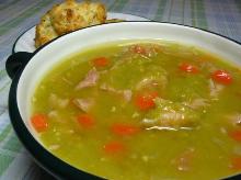 | Easy Old Fashioned Split Pea Soup Recipe | CDKitchen.com butter, split peas, croutons, chicken stock, pepper, parsley, carrot, onion, celery, ham, salt, milk, water A recipe for Easy Old Fashioned Split Pea Soup made with dry yellow split peas, water, chicken broth, cooked ham, carrot, onion, celery, butter Wash peas and place in a large saucepan. Add water, chic...