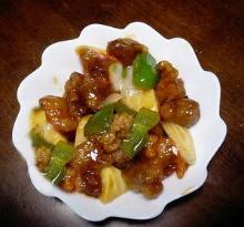 | Easy Sweet And Sour Pork With Pineapple Chunk Recipe by admin | ifood.tv pork shoulder, green pepper, cornstarch, pineapple, onion, vinegar, soy sauce, salt, fat, brown sugar, water Cut meat into strips, about 3 to 4 inches long and 1 inch wide. Melt shortening in skillet; cook meat until lightly browned. Drain pineapple and mix juice with water, vinegar, soy sauce, brown sugar...