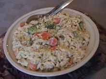 | Easy Creamy Pasta with Veggies Recipe - Food.com vegetables, mushroom soup, soup, pepper, carrot, cauliflower, broccoli, mustard, salt, parmesan cheese, cream cheese, pasta, milk This makes a terrific side dish for chicken or pork chops, or a complete vegetarian meal. You can also add cubes of leftover ham, turkey or chicken to make a yummy one-dish meal. Servings Per Recipe: ...