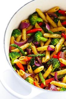 Easy Balsamic Veggie Pasta - Gimme Some Oven red onion, red bell pepper, olive oil, pepper, garlic, asparagus, broccoli, balsamic vinegar, salt, parmesan cheese, pasta This Balsamic Veggie Pasta recipe is quick and easy to make, loaded with fresh veggies, and tossed with a delicious balsamic vinaigrette and Parmesan. Cook pasta in a large stock pot of generously-sal...