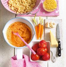 Pasta Shells with Veggie Sauce | Easy Baby Weaning Recipe butter, carrot, tomato, cauliflower, cheddar cheese, pasta Annabel Karmel's quick cheesy pasta recipe is perfect for weaning little ones and is packed with nutritious veg. Put the sliced carrot into the bottom of a steamer. Cover with boiling water and co...