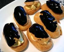 | Chocolate eclairs Recipe - Dessert.Food.com butter, eggs, salt, water, flour I'm not usually a fan of cream but I have to admit to liking the occasional chocolate eclair. Here is a recipe my mother used to make. The yield is a guess. Serving Size: 1 (22) g Servings Per Re...