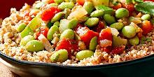 Egyptian Edamame Stew Recipe | EatingWell olive oil, mint, coriander seed, coriander leaf, cayenne pepper, cumin, edamame, onion, garlic, zucchini/courgette, tomato, lemon juice A riff on the Egyptian classic ful medames, a highly seasoned fava bean mash, this version is made with easier-to-find edamame. Edamame (fresh green soybeans) have been shown to lower LDL cholesterol....