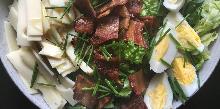 | Bacon and Egg Salad | Australia's Best Recipes olive oil, coriander, avocado, tomato, lettuce, eggs, bacon This salad is perfect for brunch. Fry bacon until crisp. Divide first 6 ingredients into 4 bowls and drizzle with olive oil. Serve immediately. Recipe Reviews (2) JOIN THE CONVERSATION Log in Reg...