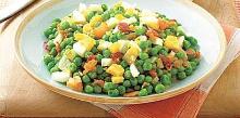 | Pea Salad with Bacon and Eggs Recipe | MyRecipes snap/snow peas, olive oil, peas, onion, garlic, eggs, bacon, mustard, red wine vinegar Try the fresh taste of peas. Add color and crunch to all your meals with this favorite springtime veggie. Instructions Checklist Step 1 Hard-boil eggs: Put eggs into a small saucepan, add enough wat...