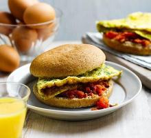 | Egg & tomato baps recipe | BBC Good Food olive oil, parsley, garlic, tomato, eggs Fill wholewheat bread rolls with juicy tomatoes and a herby omelette for a filling yet cheap breakfast or brunch STEP 1 Brush the cut side of the tomatoes with a little of the oil then cook them on a...