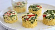 Bacon-Spinach Egg Bites gouda cheese, red bell pepper, hot sauce, cooking spray, chives, spinach, broccoli, eggs, bacon, cheddar cheese, cheese, creme freche Use any half-pint oven-safe vessel to make these individual coffee shop-style egg bites. For a fluffier texture, add 1 tablespoon water to the egg mixture before baking. Preheat oven to 325 F. Coat si...
