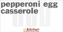 | Pepperoni Egg Casserole Recipe | CDKitchen.com pepperoni sausage, eggs, seasoning, monterey jack cheese, bread, milk A recipe for Pepperoni Egg Casserole made with bread cubes, monterey jack cheese, eggs, milk, Italian seasoning Preheat oven to 325 degrees F. Place bread cubes in bottom of greased 10 x 6 inch baking...