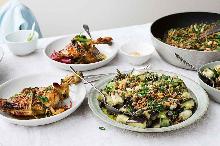 | Pork with ginger, spring onion and eggplant - Recipes - delicious.com.au ground pork, dark soy sauce, sunflower oil, sesame seed oil, peanut, sesame seed, ginger root, coriander, green chili, spring onion, garlic, aubergine/eggplant, rice vinegar, mirin 1. Place the eggplant in a bowl with 11⁄2 tsp salt. Mix well, then transfer to a steamer (or a colander). Fill a large saucepan with water to a depth of 3cm. Bring to the boil, then place the s...