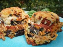 | Eggplant Parmigiana | Australia's Best Recipes basil, sun dried tomatoes, aubergine/eggplant, eggs, parmesan cheese, mozzarella cheese, bread crumbs, milk, flour, ghee A different way to enjoy eggplant. Sounds fancy, but simple to make. Cut eggplant into slices lengthwise 1cm thick. Slit each piece 3⁄4 of the way through, to make a pocket. Fill with a slice ...