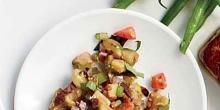 | Caponata (Italian Eggplant Relish) Recipe | CDKitchen.com black olive, red onion, yellow/orange bell pepper, red bell pepper, olive oil, pine nut, pepper, parsley, caper, basil, garlic, celery, tomato, aubergine/eggplant, anchovy, red wine vinegar, salt, sugar A Sicilian specialty! Eggplant is fried and then stewed along with tomatoes, onions, olives, anchovies, and capers. Preheat oven to 350 degrees F. Place the pine nuts on a baking sheet and place in th...
