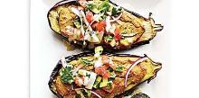 | Falafel-Stuffed Eggplant & Tahini Sauce & Tomato Relish Recipe | MyRecipes red onion, olive oil, cooking spray, sesame seed, red peppercorn, pepper, parsley, coriander seed, cumin, chickpea, onion, garlic, tomato, cucumber, aubergine/eggplant, eggs, relish/chutney, tahini, salt, bread crumbs, honey, lemon juice, water In Falafel-Stuffed Eggplant with Tahini Sauce and Tomato, we use the same components as falafels to make a tasty filling for eggplants. Instructions Checklist Step 1 To prepare sauce, combine first ...