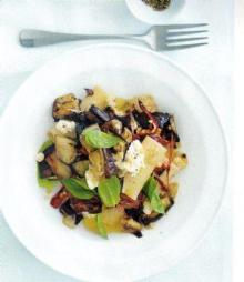 | Roasted Eggplant, Basil & Ricotta Pasta Recipe | SparkRecipes ricotta cheese, olive oil, pepper, red chili, basil, garlic, aubergine/eggplant, sherry vinegar, salt, pasta Preheat oven to 200C. Place the eggplant, garlic, chillies, oil, salt and pepper in a baking dish and toss to combline. Roast for 23-30 minutes or until golden and tender. Cook the pasta in a saucepan...