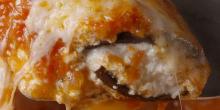 | Eggplant & Mozzarella Stick Roll-Ups Recipe | EatingWell olive oil, pepper, basil, garlic, tomato, aubergine/eggplant, eggs, salt, mozzarella cheese In this healthy dinner recipe, wrapping tender slices of eggplant around frozen mozzarella sticks yields eggplant Parmesan-like results in a fraction of the time. Serve with a green salad for an easy ...