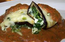 | Eggplant Roll-Ups With Roasted Tomato Sauce Recipe - Food.com swiss cheese, ricotta cheese, olive oil, cooking spray, pepper, basil, tomato, aubergine/eggplant, spinach, salt, parmesan cheese, cheese This is one of those recipes I have had to give up since marrying a non-eggplant-eater and having two non-eggplant eating children. It is a lovely company vegetarian main dish. More or less like a las...