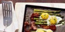 | Asparagus and Eggs, a Special Breakfast Treat Recipe - Food.com butter, dry cured ham, pepper, asparagus, eggs, salt, parmesan cheese Looking for a special breakfast treat. Look no further. This dish is devine. It's quick and easy and has terrific flavor and textures. It always brings a smile to my face. Hope you will enjoy. Ser...