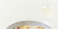 | Linguine with Asparagus and Egg Recipe pancetta, olive oil, shallot, asparagus, eggs, parmesan cheese, pasta This recipe makes a simple but satisfying pasta perfect for midweek dinners. Step 1 Heat large covered saucepot of salted water to boiling on high. Step 2 Meanwhile, heat pancetta in 12-inch nonstick...