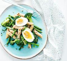 | Broccoli pasta salad with eggs & sunflower seeds recipe | BBC Good Food miso, rapeseed oil, sunflower seeds, ginger root, bean, broccoli, eggs, pasta Pack in protein, carbohydrate and vitamins with this broccoli, pasta and eggs dish, a healthy vegetarian lunch to keep you going on a busy afternoon STEP 1 Hard-boil the eggs for 8 mins, then shell a...