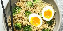 | Sesame Instant Ramen Noodles with Broccoli & Soft-Boiled Egg Recipe | EatingWell sesame seed oil, sesame seed, broccoli, eggs, noodles, water Jazz up basic ramen noodles with toasted sesame oil, quick-cooked broccoli and a jammy soft-boiled egg. To cut back on sodium, look for ramen varieties with less than 600 mg sodium per serving or use ...
