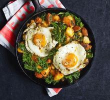| Roast sweet potato, chorizo and onion hash with poached eggs recipe red onion, chorizo sausage, vegetables, olive oil, parsley, cumin, lemon, butternut squash, sweet potato, spring onion, eggs This veggie-packed chorizo and onion hash is high in protein and vitamin B from the eggs and only takes 30 minutes to make. Bring a large pan of water to the boil, add the squash and sweet potato and ...