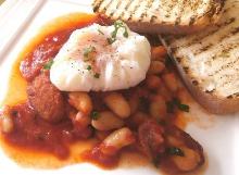 | Baked Beans with Poached Egg and Chorizo recipe | Australia's Best Recipes cannellini bean, chorizo sausage, olive oil, parsley, paprika, onion, garlic, tomato, eggs, water There's nothing like a lazy Sunday brunch and with thanks to GLAD the poached egg looks restaurant quality! Finely dice the onion, and cut the chorizo into slices. Heat a medium frypan (with a li...