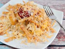| Egg Noodle Mexican Casserole Recipe - Food.com tomato sauce, taco sauce, ground beef, kidney bean, sweetcorn, salsa, taco seasoning, noodles, cheddar cheese This is one our favorite Mexican Casseroles. Serving Size: 1 (322) g Servings Per Recipe: 8 AMT. PER SERVING % DAILY VALUE Calories: 439.4 Calories from Fat 183 g 42 % Total Fat 20.4 g 31 % Satu...