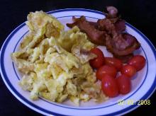 | Mexican Eggs Recipe - Food.com oregano, coriander leaf, green chili, onion, garlic, tomato, eggs, bacon, guacamole, salt, monterey jack cheese, tortilla This is a great way to have your breakfast eggs and bacon. Serving Size: 1 (250) g Servings Per Recipe: 3 AMT. PER SERVING % DAILY VALUE Calories: 592.1 Calories from Fat 371 g 63 % Total Fat 41....
