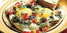 | Mexican Baked Eggs Recipe | SparkRecipes chili dried/powder, black beans, olive oil, coriander, green chili, cumin, onion, tomato, eggs, cheese Easy, delicious and healthy Mexican Baked Eggs recipe from SparkRecipes. See our top-rated recipes for Mexican Baked Eggs . Preheat oven or toaster oven to 450F/230C. Spray 8x8 baking dish with olive ...