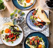 | Mexican Breakfast Recipes with Eggs | olivemagazine red pepper, black beans, olive oil, coriander, green chili, red chili, lime, spring onion, garlic, broccoli, eggs, tortilla, sugar Try our Mexican breakfast recipe with eggs. Our Mexican style breakfast is an easy breakfast wrap recipe. Try our egg wrap recipe for a breakfast wrap idea STEP 1 Heat the oven to 220C/fan 200C/gas 7...